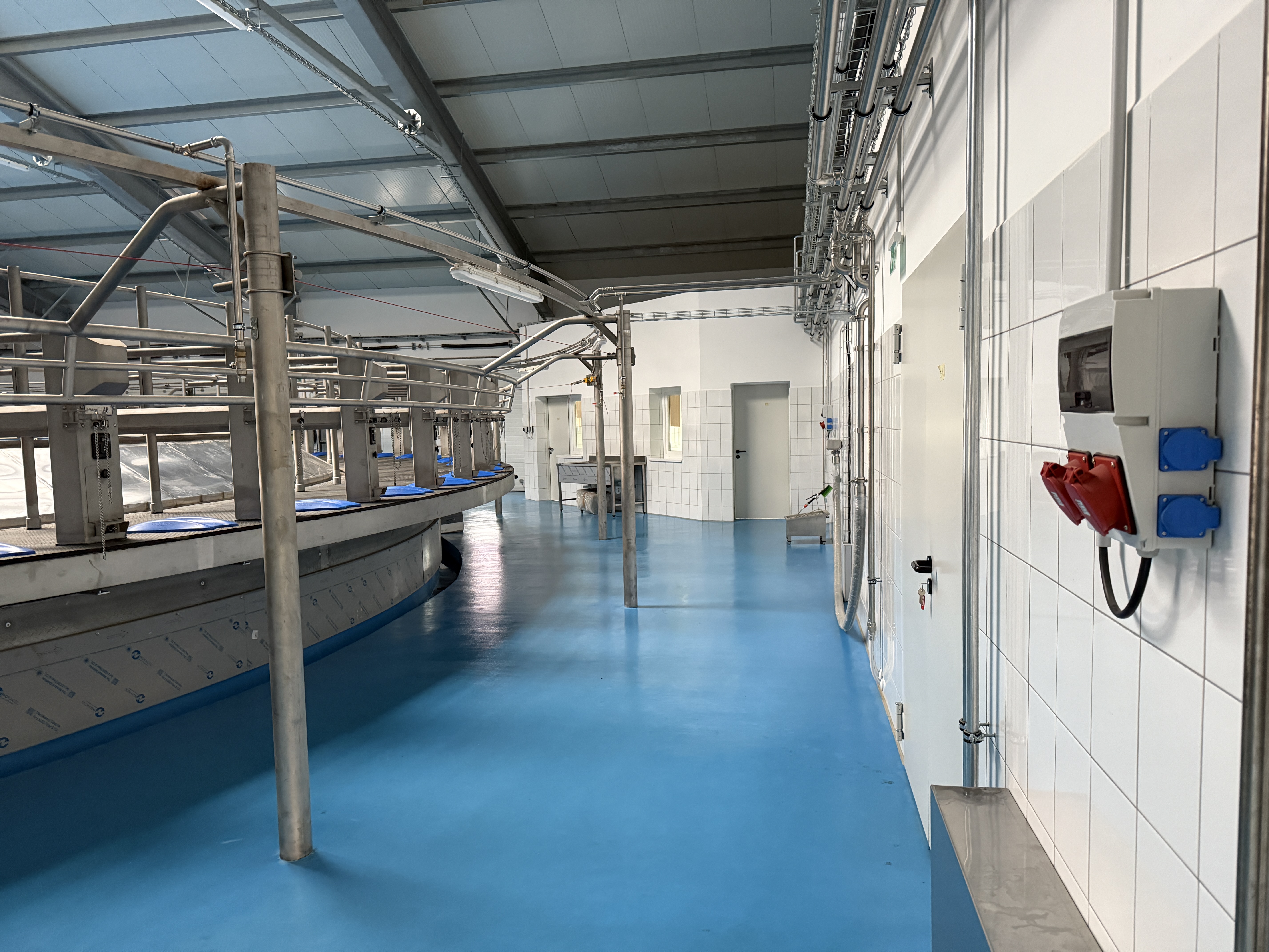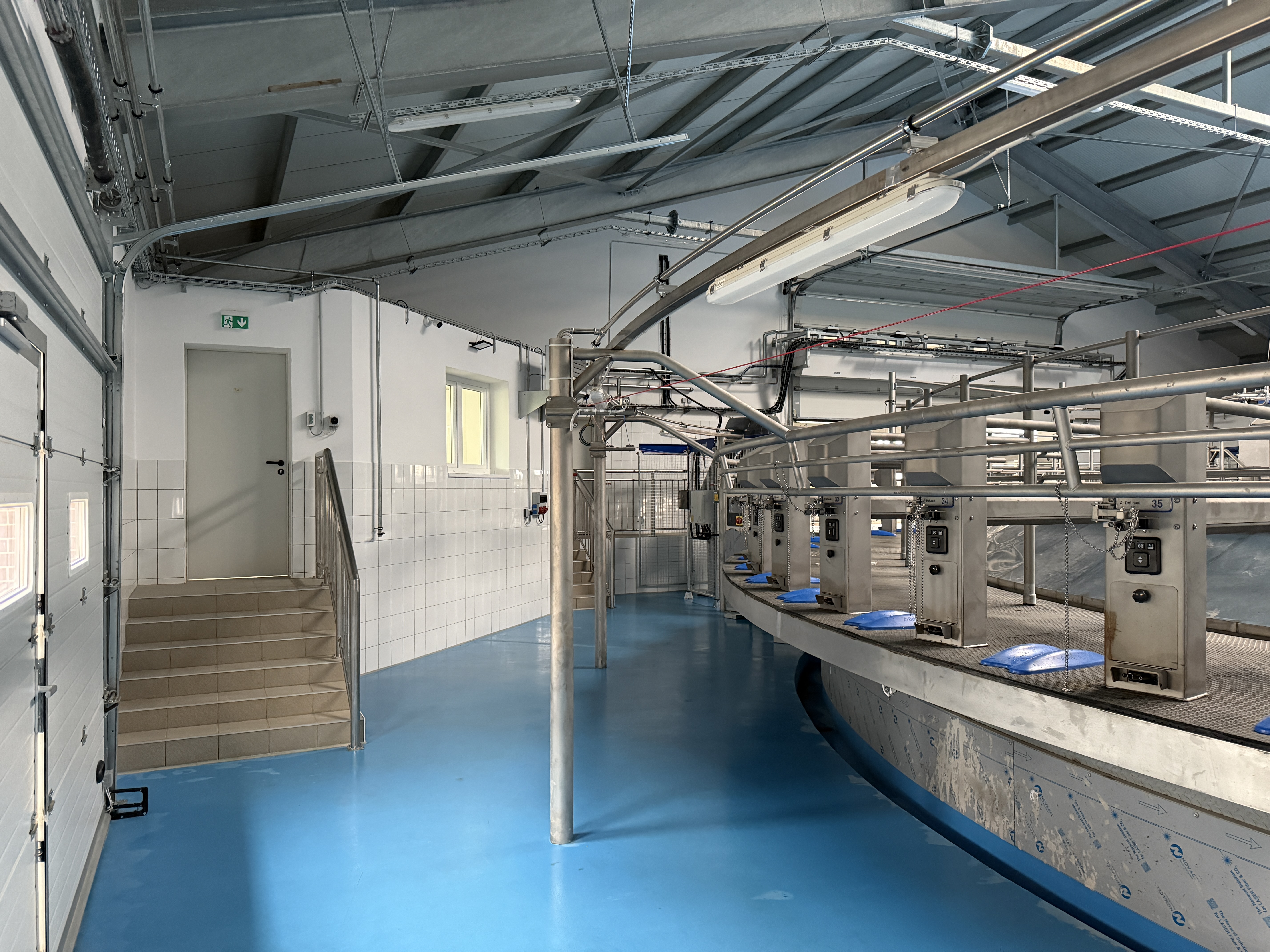 Az új fejőüzem egy 1806 m² alapterületű épület, amely kifejezetten a nagyüzemi, automatizált fejés igényeihez lett tervezve. A technológiai központ a DeLaval által szállított rotari típusú robotfejő rendszer, amely: